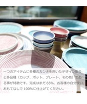 ひとつのアイテムに多種のカンナを用いたデザイン彫りと多品種(カップ、ポット、プレート、その他)である事が特徴です。完成はまだ65%、お客様の自分使い、おもてなしで100%に仕上げてください。