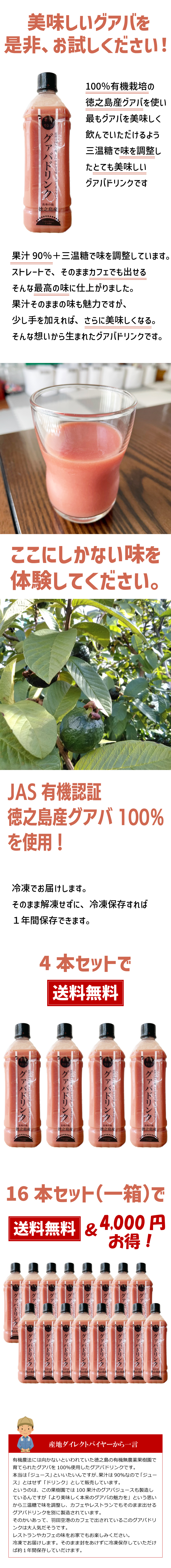 グアバジュース 900ml 徳之島産 JAS有機認証 グアバ100% 冷凍