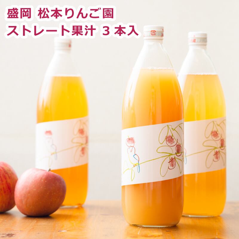 岩手県産 松本りんご園のストレート果汁100%りんごジュース1000mlおすすめ3本セット|