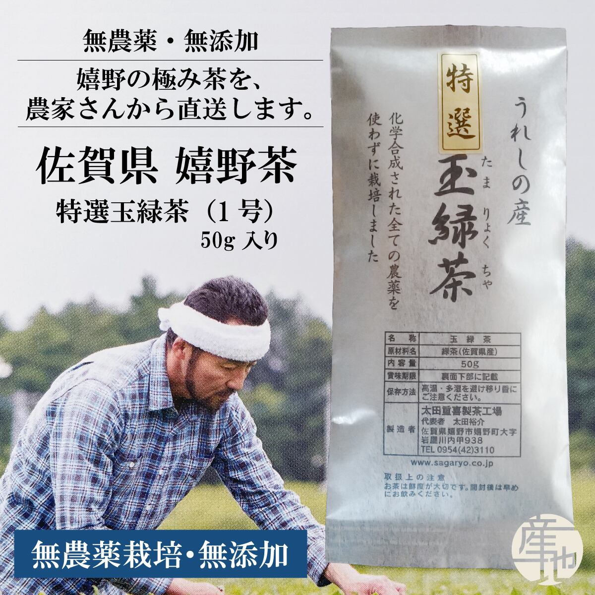 名称:無農薬栽培の嬉野茶 特選蒸製玉緑茶(1号)